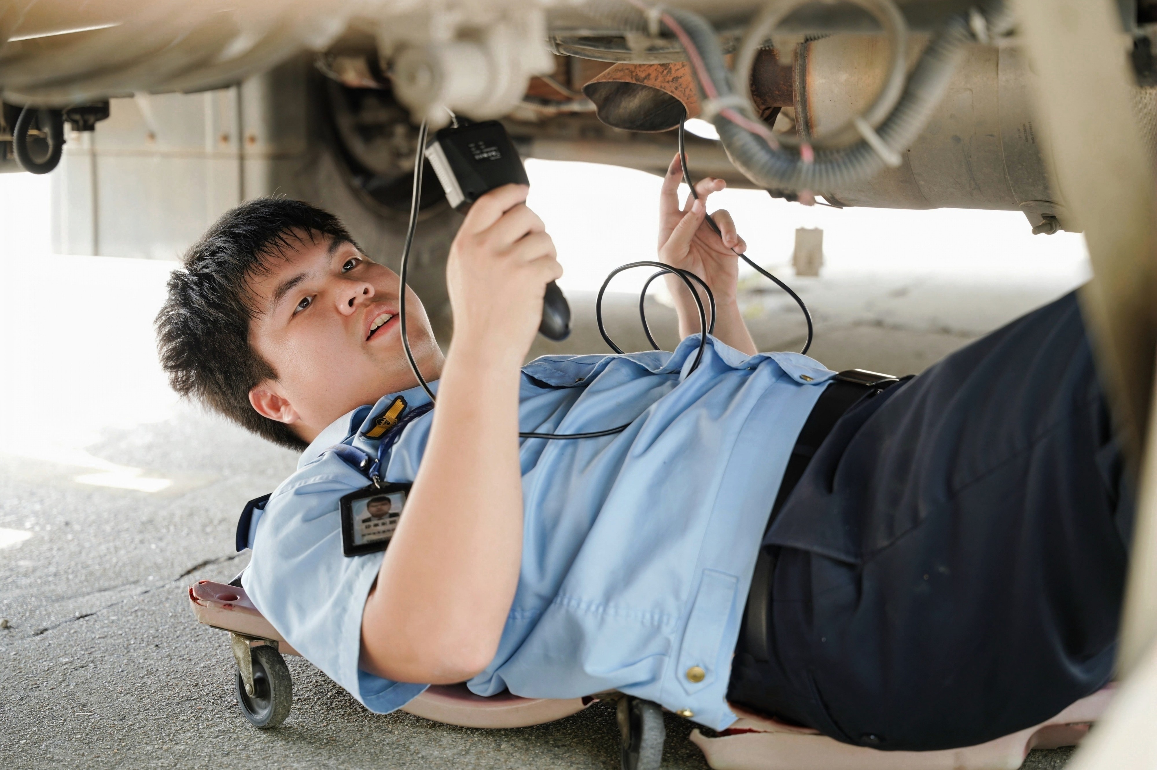 10月30日,战场转至真实的检测线。机动车排放现场执法科目在此展开,全面检验执法人员的“手上功夫”与程序规范性。在机动车检验机构执法检查和重型柴油车检查两大实战场景中,参赛队伍在严格计时下,熟练操作内窥镜、OBD诊断仪等专业设备,对检测线仪器与国六重型柴油车污染控制装置进行细致勘察。从着装规范、出示证件及检查通知到全程开启执法记录仪,每一个环节都一丝不苟。这不仅考验执法人员发现问题、固定证据的能力,更是对团队协作、执法程序与细致程度的全方位实战评估。