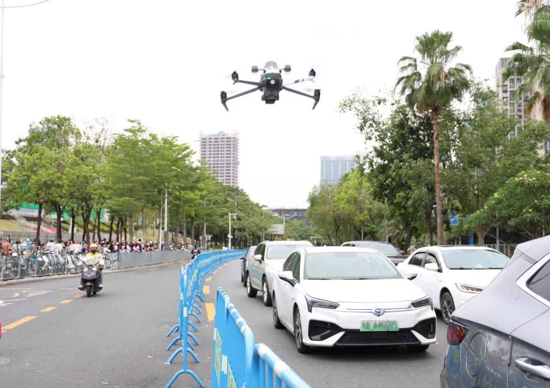 交警利用警用无人机掌握路况,疏导交通。图源:深圳公安发布