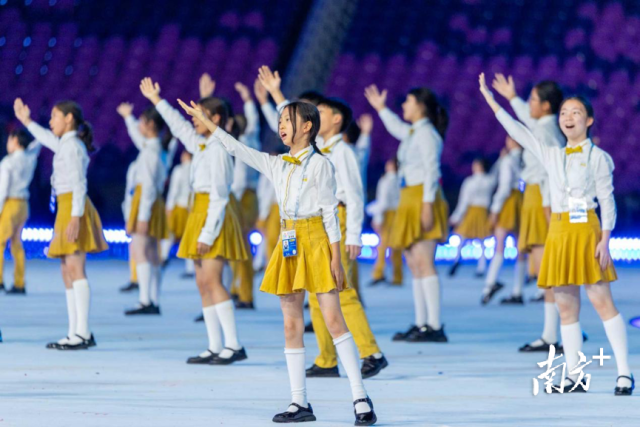 “这次十五运会首次由粤港澳三地联合承办,作为一名香港人,我非常自豪能参与开幕式暖场表演的环节。”暖场表演合唱团演员翁昊宇兴奋地分享道,“我们每天约练习六个小时,有时候一句歌词都要反复练习十几遍,希望在11月9日开幕式暖场表演的舞台上能精彩绽放。”