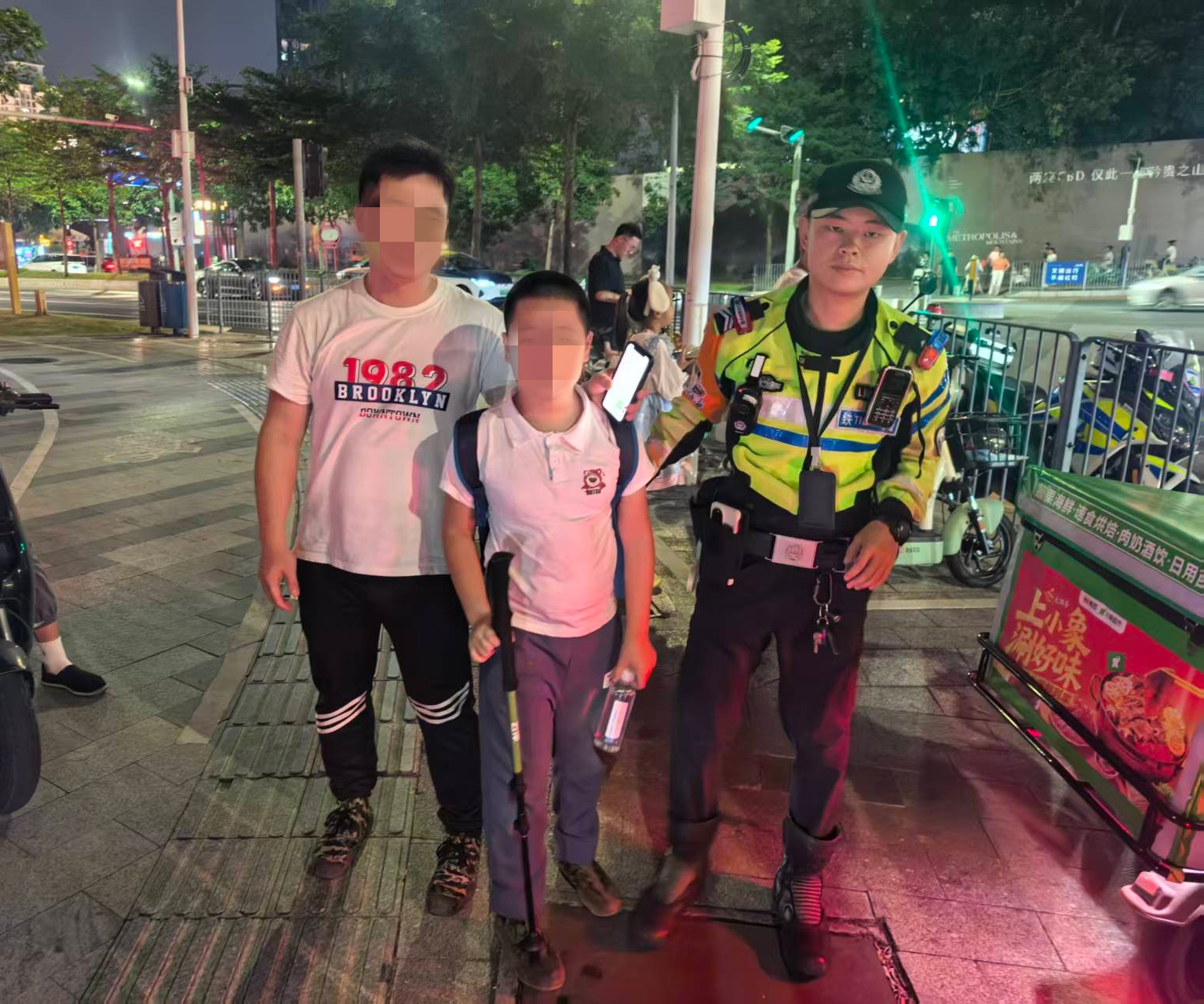 “别哭,叔叔带你找家人!”面对焦急哭泣的孩子,铁骑队员立即俯下身,耐心安抚其情绪,用温和的话语缓解孩子的紧张与恐惧。待小朋友情绪稍稳后,队员细心引导其回忆家长的联系方式,并成功根据孩子提供的电话号码联系上了其父亲。在等待家长期间,铁骑队员始终陪伴在左右,确保孩子的安全。