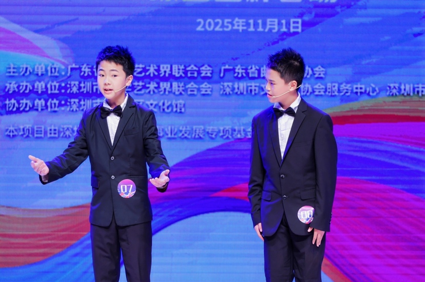 决赛现场,选手们以精湛的技艺和饱满的热情,为观众呈现了一场精彩纷呈的曲艺盛宴。入围决赛的节目题材丰富,立意深刻,展现了湾区青少年的时代风貌与文化自信。其中,有探讨青少年如何与智能电子产品和谐相处的情景数来宝,有反映现实生活、幽默揭示德智体全面发展主题的对口相声,还有讲述少年英雄故事的群口快板。曲艺新苗们在舞台上绽放才华,赢得了现场观众的阵阵掌声。