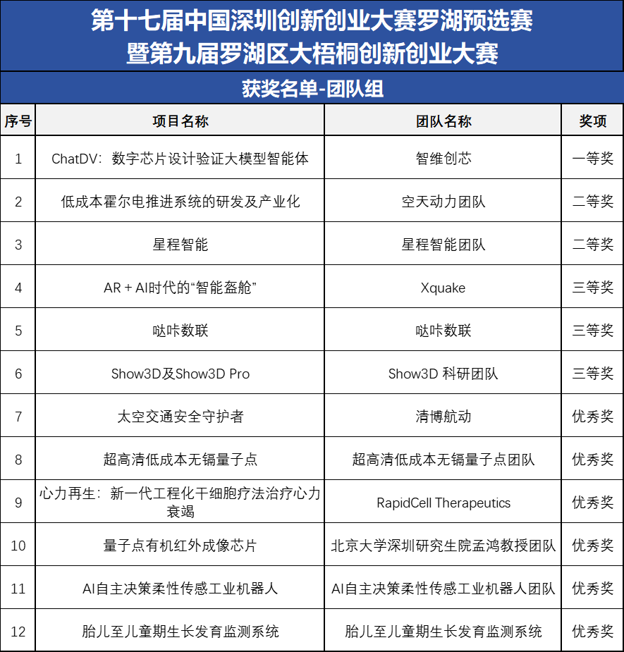 记者了解到,24个获奖队伍中,光魔科技(深圳)有限公司凭借“AI驱动的视觉故事智能生成平台”项目斩获企业组一等奖,智维创芯团队则以“ChatDV:数字芯片设计验证大模型智能体”项目夺得团队组一等奖。