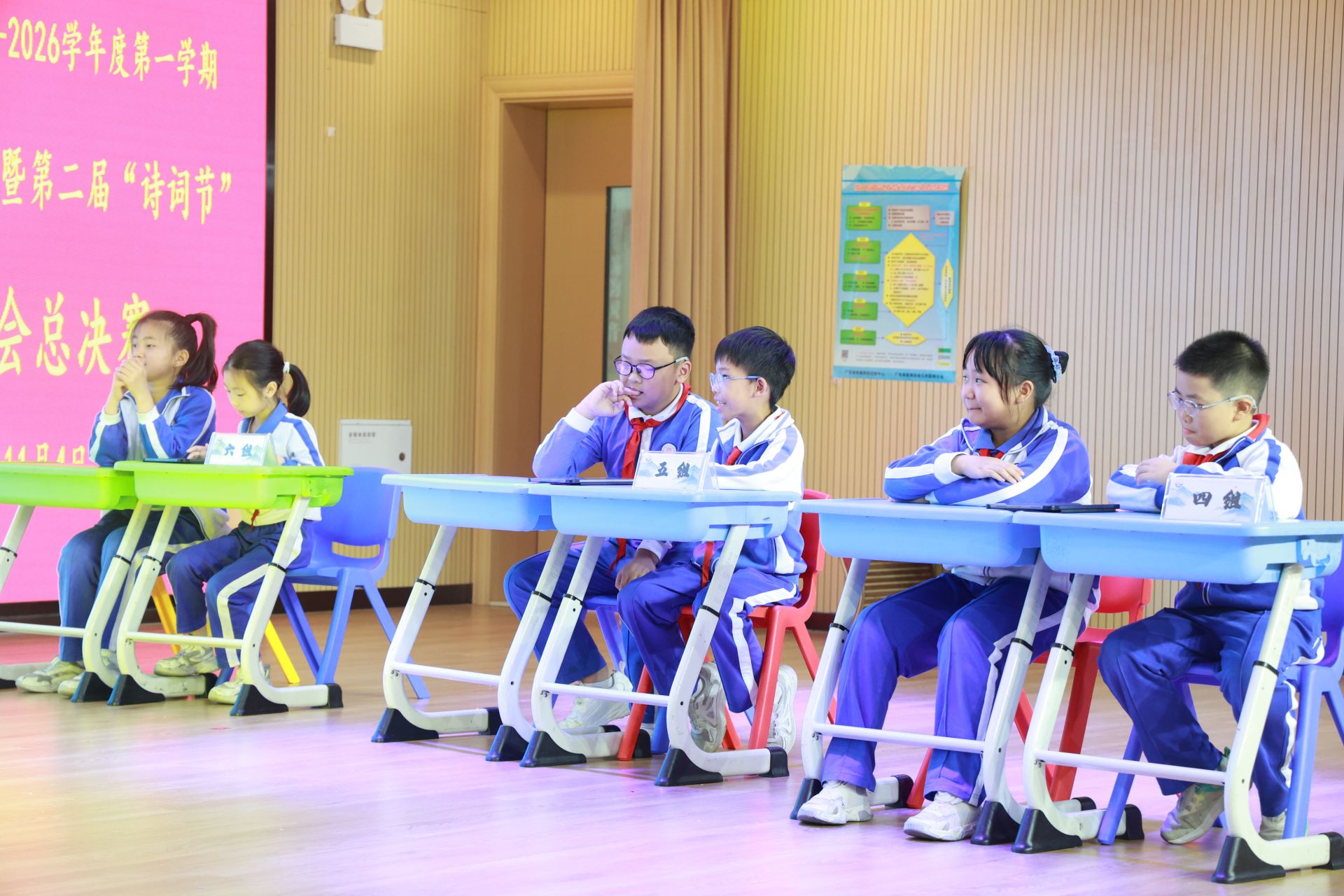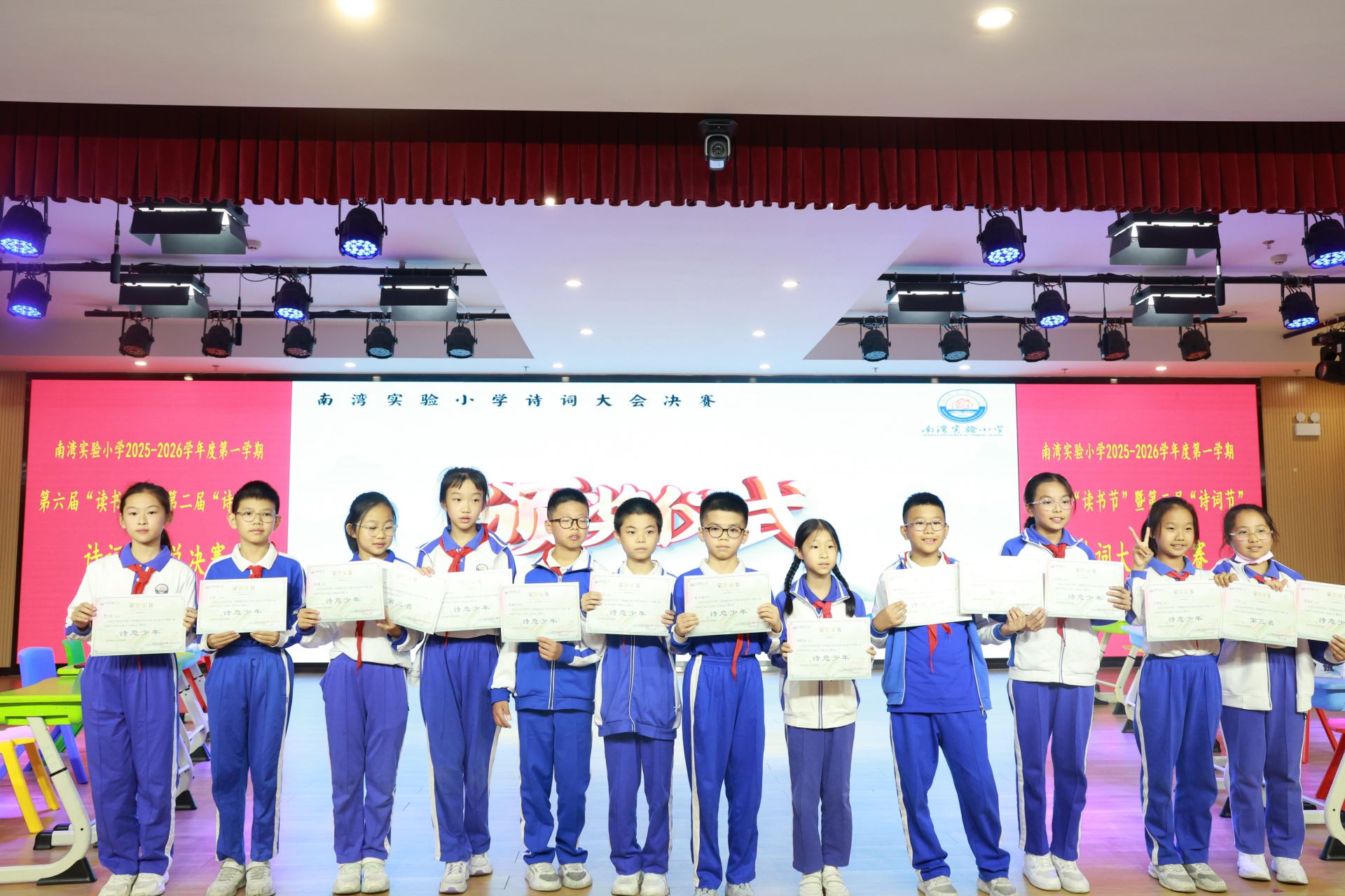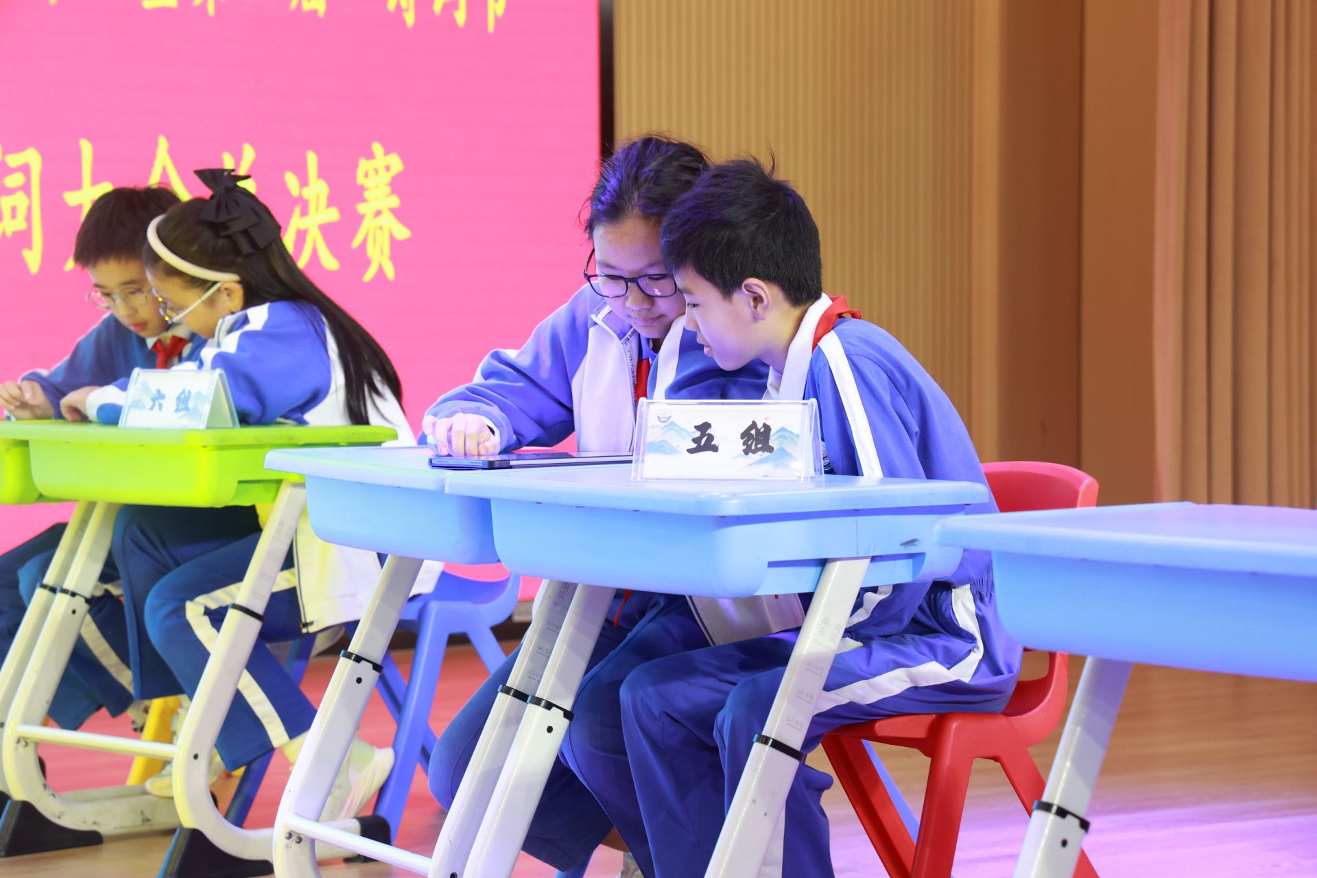 近日,南湾实验小学第六届“读书节”暨第二届“诗词节”诗词大会在校园橙光厅顺利落下帷幕。本次活动以“赴一场橙光诗会,觅千年文字知音”为主题,历时近一个月,通过微课学习、线上初赛和线下决赛等多元形式,成功吸引了学校三至六年级千余名学生的积极参与。