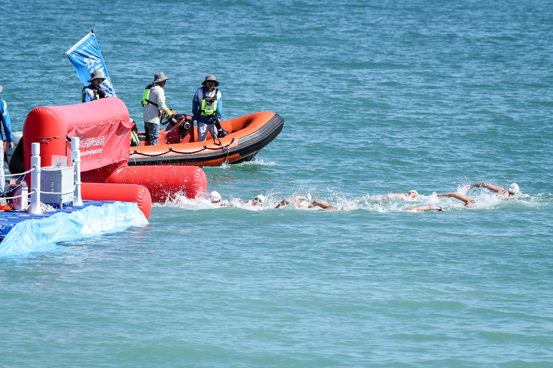 本届赛事共44支代表队参赛,其中女子运动员44名,男子运动员52名。在桔钓沙海域,组委会摆放了5个浮标和若干个红色标志物组成场地,参赛运动员在场地里游6圈,完成10公里比赛。
