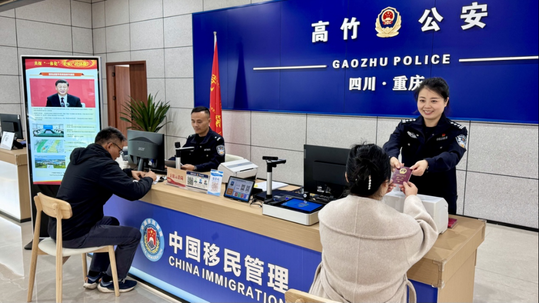 川渝高竹新区出入境窗口的青年党员为园区企业职工提供办证服务