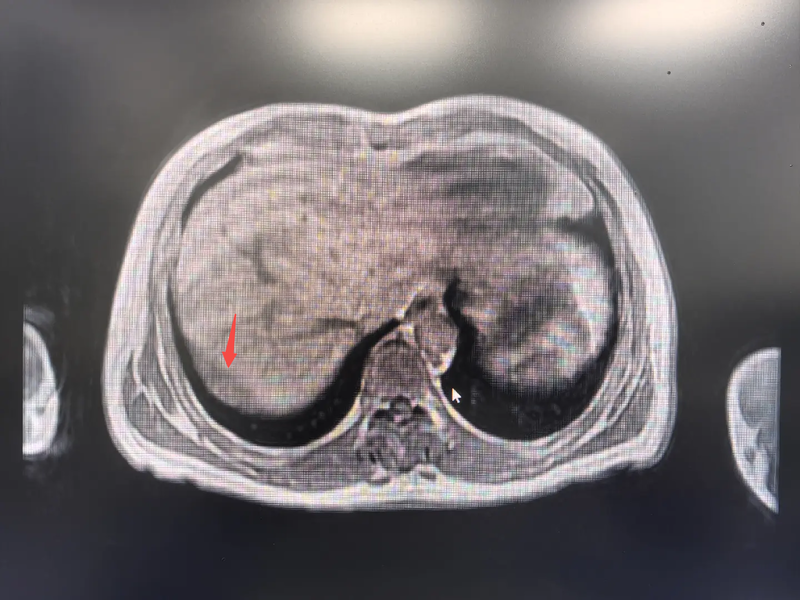 • 第三关:病灶在“危险地带”。肿瘤长在右膈下腹膜,紧贴着负责呼吸的膈肌。膈肌就像一层“天花板”,手术中很可能会切穿它,一旦进入胸腔,就变成了一个涉及胸、腹两腔的复杂手术。