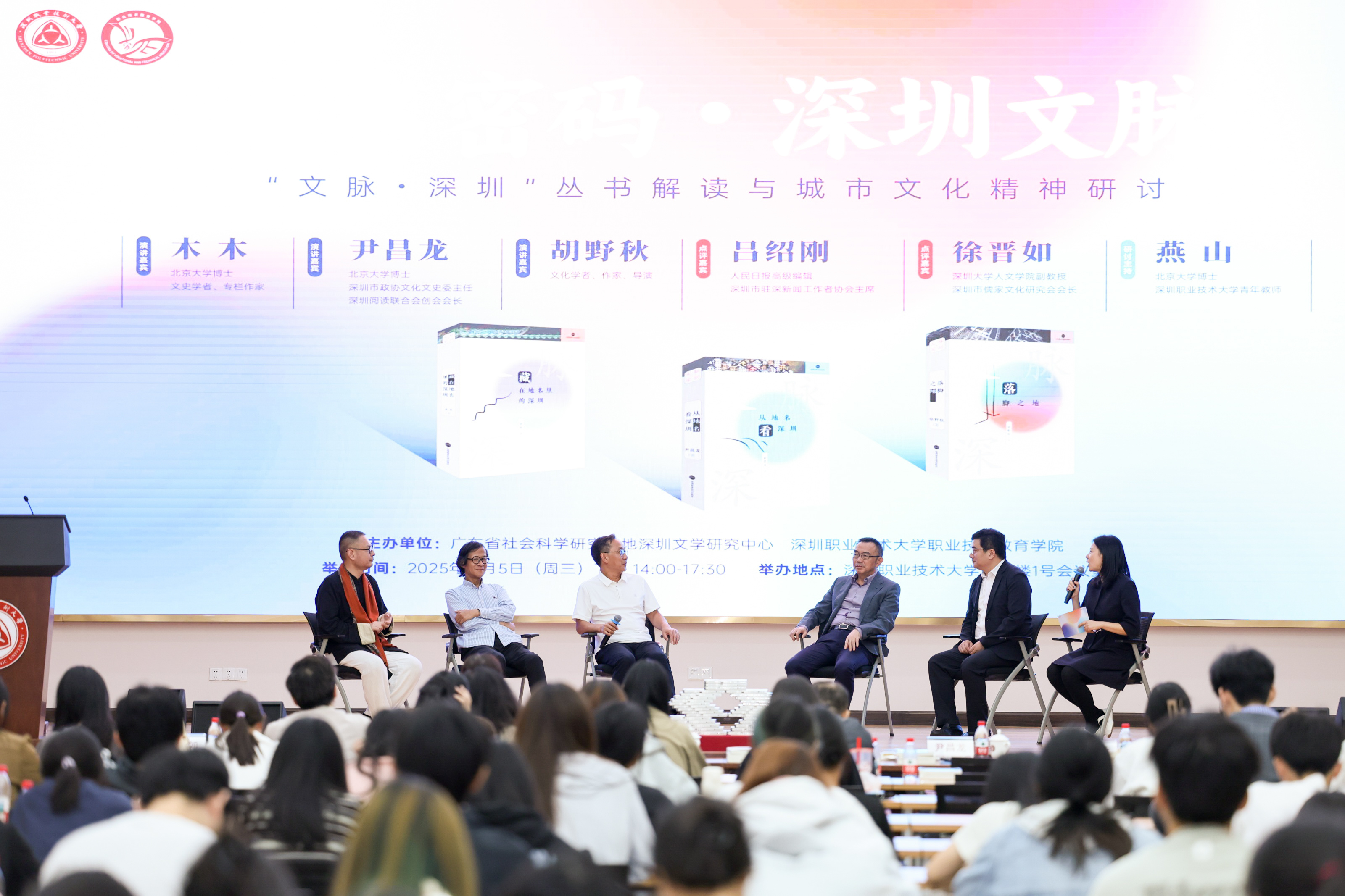 11月5日,广东省社会科学研究基地深圳文学研究中心、深圳职业技术大学职业技术教育学院联合主办的“地名密码·深圳文脉——‘文脉·深圳’丛书解读与城市文化精神研讨会”在深圳职业技术大学举行。来自文学、传媒与城市文化研究领域的多位嘉宾,与近200名深职大师生共同围绕深圳地名展开交流,对这座“移民之城”的历史沉积、精神气质和文化认同进行系统梳理。