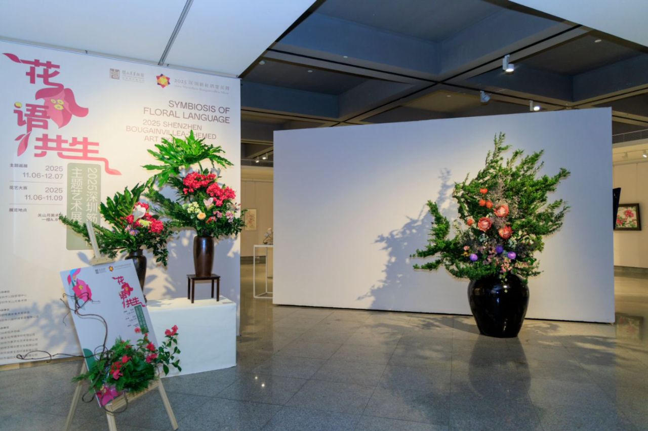 11月6日,由深圳市关山月美术馆与深圳市公园管理中心联合主办的“花语共生——2025深圳簕杜鹃主题艺术展”在关山月美术馆开幕,展期至12月7日。本次展览以深圳市花簕杜鹃为创作主题,汇聚花艺师与艺术家的多元表达,以视觉艺术诠释这座城市热烈而坚韧的精神底色。展览以花为媒,连接自然与城市、艺术与生活,让观众在流动的花语中感受深圳的包容与创造力。