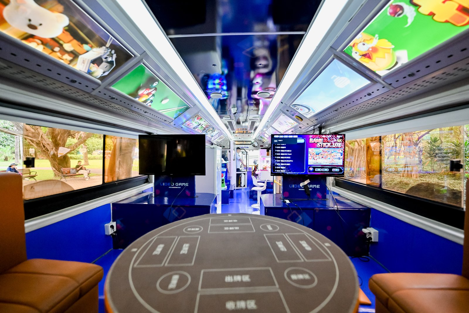 “潮玩巴士”主打年轻化互动,车身涂鸦汇聚深圳地标与潮流符号,市民可体验移动游戏厅的AR加特林,感受深巴拥抱时代、链接未来的青春活力。