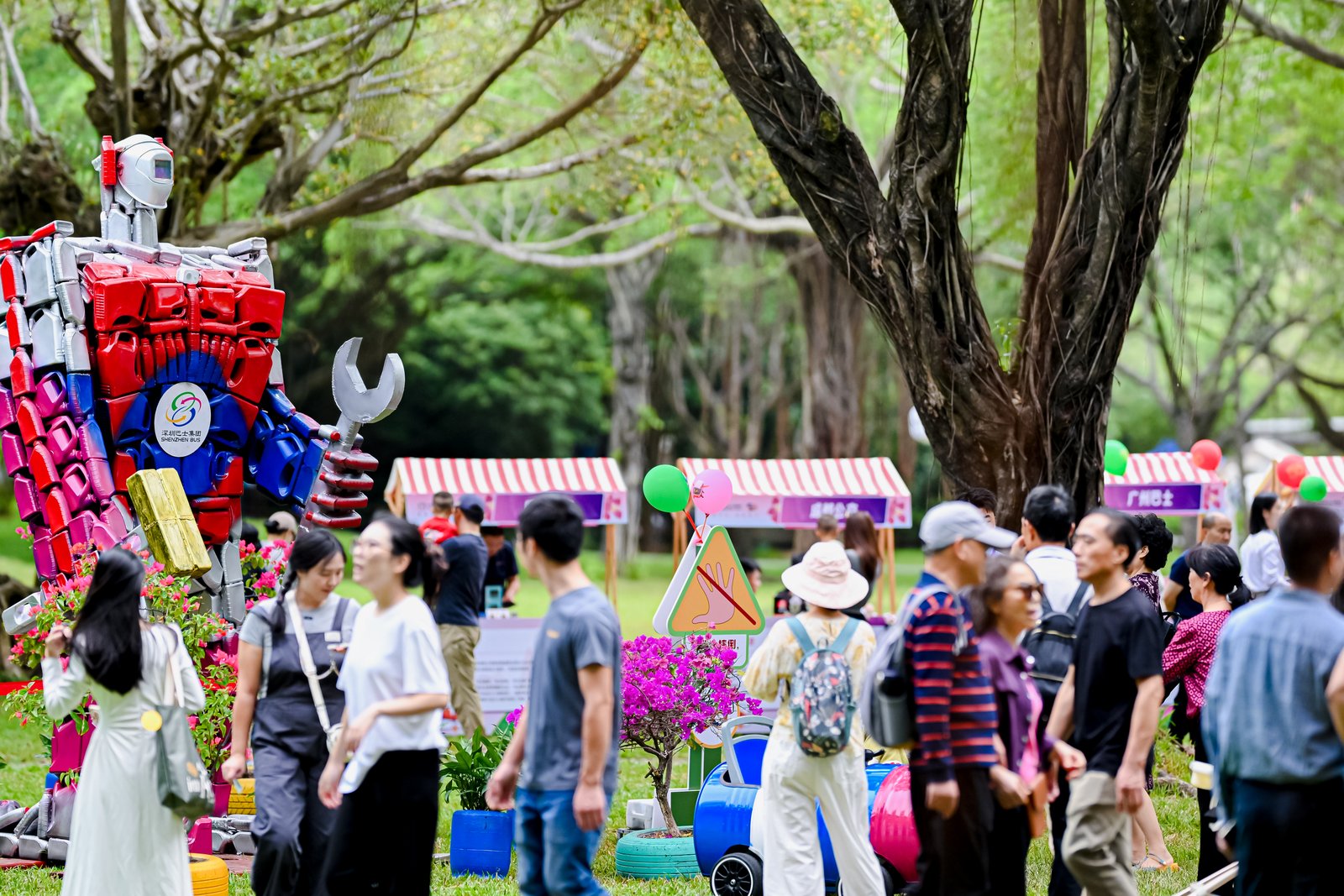 在引人注目的“废弃零件・重焕新生”环保展区,报废公交车的金属零件、轮胎等材料,被打造打造成了城市地标雕塑、实用家具等艺术品,生动诠释了深巴绿色发展的理念与实践,让环保意识在观赏中深入人心。