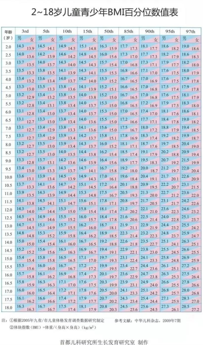 别再凭感觉判断孩子胖不胖,用BMI(身体质量指数)自查最准确: