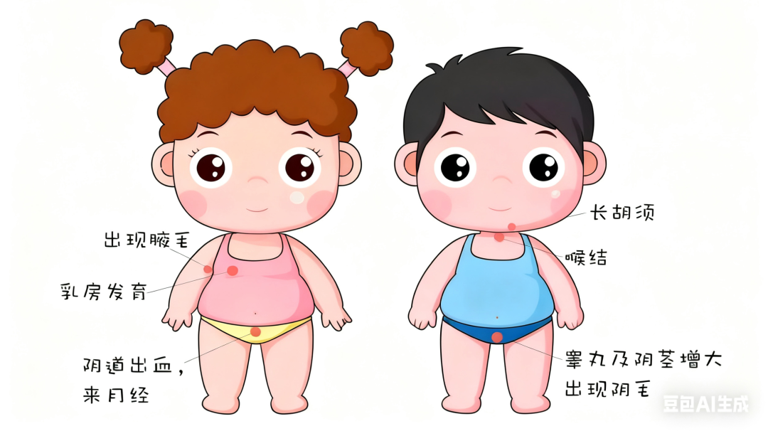 相较男孩来说,女孩更容易出现性早熟(7.5岁前乳房发育),青春期女孩还可能患上多囊卵巢综合征,表现为月经不调;部分孩子会出现雄激素异常,呈现男性化表现。