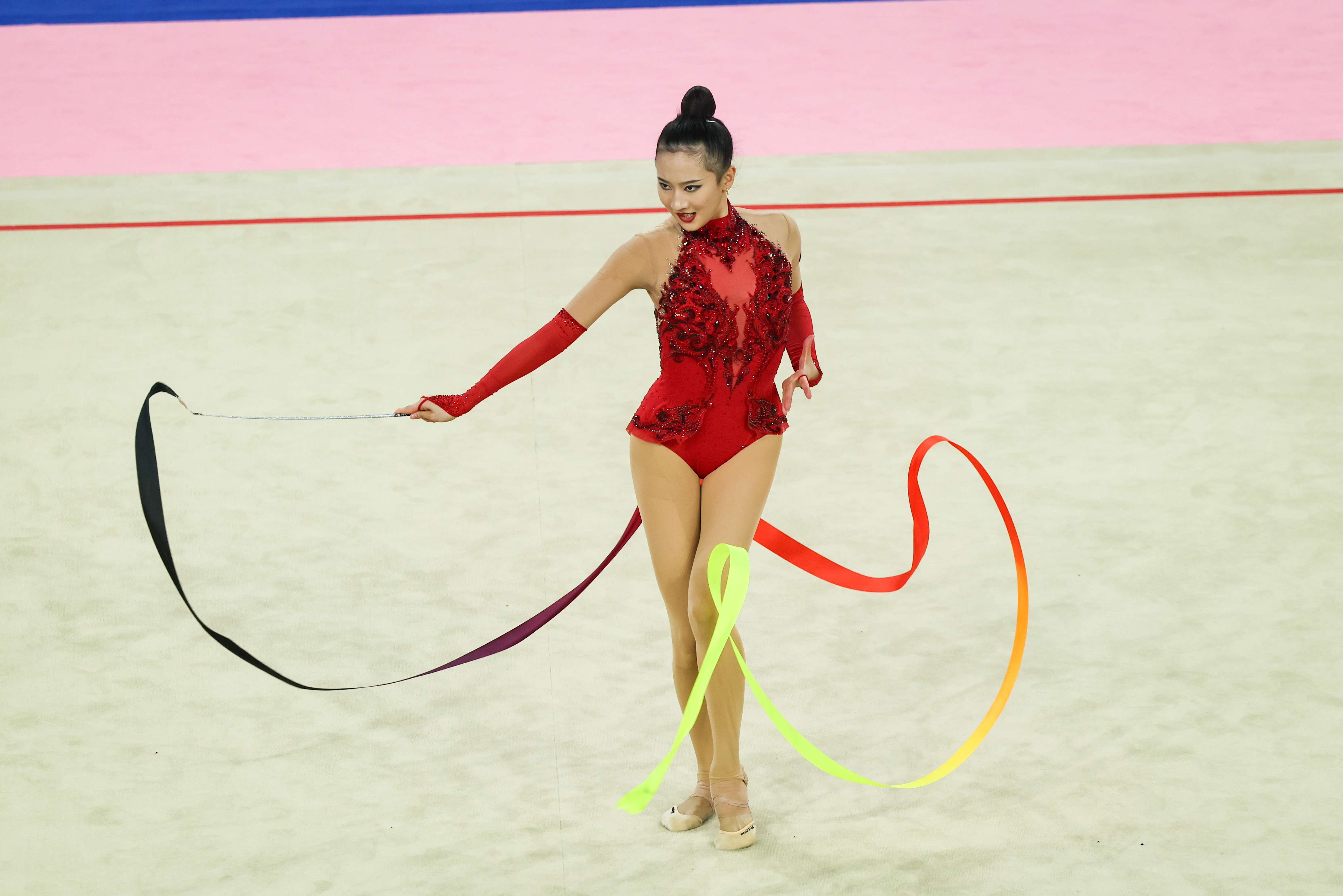 在11月8日进行的预赛中,王子露以86.35分排名第一。决赛中,这位生于深圳的陕西队选手延续了高光表现,在圈、球、棒、带的比赛中不仅完成了多个高难度动作,更在不同项目中展现了喜怒哀乐的不同情绪,不论是竞技性还是艺术性,都给观众带来了享受。
