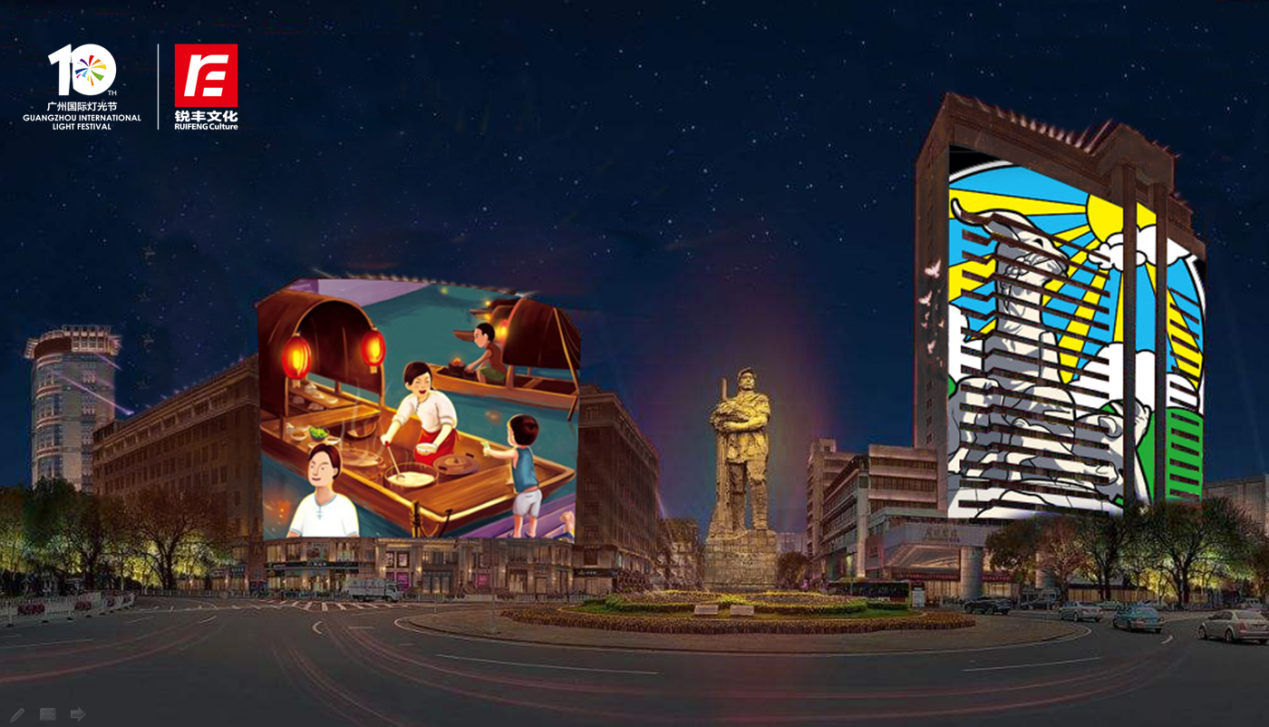 本屏幕的内容创编除了以展示本屏幕裸眼3D独特的视觉呈现效果外,还将通过数字重构、历史资料还原等技术,把越秀区与广州市的历史发展,海上丝绸之路的辉煌,以及广府文化特色文化元素,通过创意视觉方式呈现给群众与游客,让大家领略广府文化独特的传承与创新,彰显“老城区,新活力”的发展思路,并突出全国示范文化步行街之一——北京路敢为人先,突破自我的决心。
