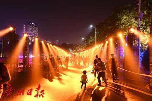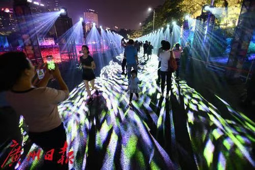 今年广州国际灯光节走进第十个年头,记者在现场注意到,灯光展示中专门开辟了十年回顾展,往届灯光节中许多经典作品重现,都在默默诉说着广州国际灯光节与城市、市民相伴走过的十年,共同见证了“老城市、新活力”。