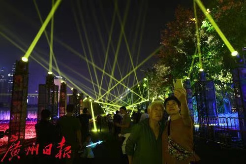 今年,在花城广城和海心沙共有16组灯光作品,为广州市民游客带来了耳目一新的视听享受。其中花城广场有3件大型灯光作品,采用全开放非预约的模式,向市民游客开放,共同演绎“幸福时光:城市腾飞”的主题。而海心沙有13组灯光作品,则采用全围蔽预约模式。其中水舞台区域13号作品《我们的时光》舞台灯光秀,演出时间为:每晚7:00、7:30、8:00、8:30、9:00,正点开场。