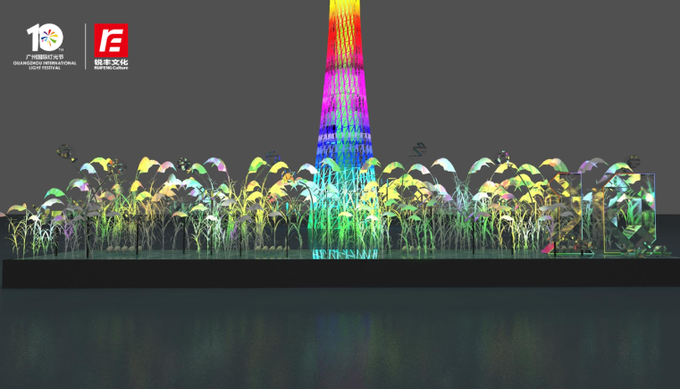 花城广场灯光作品,以“幸福时光:城市腾飞”为主题,计划展出作品共3组,采取全开放非预约模式。