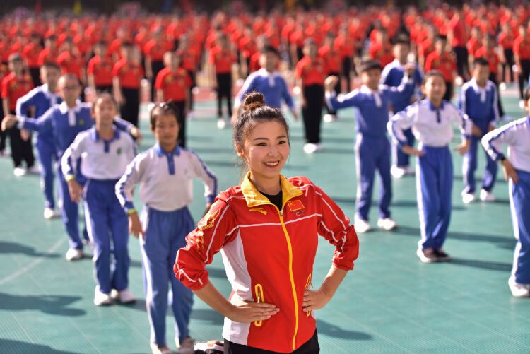 11月16日,福田区教科院附属小学广场上,身穿红色运动服的学生们,在奥运会冠军、北京师范大学教师何可欣带领下,沉浸在动感的音乐声中,活波欢快地跳起了健身操,在这里,来自全国的专家和老师们一起围绕着“青少年健康体能促进与干预”进行研讨,并正式启动了体育智慧系统福田试验区。