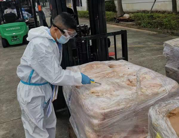 市公安局打击走私支队民警潘佳鹭介绍,走私冻品的出库、运输、接收处理等重要环节均由专人进行核对、登记,还会通过全程视频拍摄建立台账及影像资料档案,以确保处置全过程受到严格监管。与此同时,处置过程中还会严格落实疫情防控措施,做好处置人员个人防护,出库冻品消杀等工作。