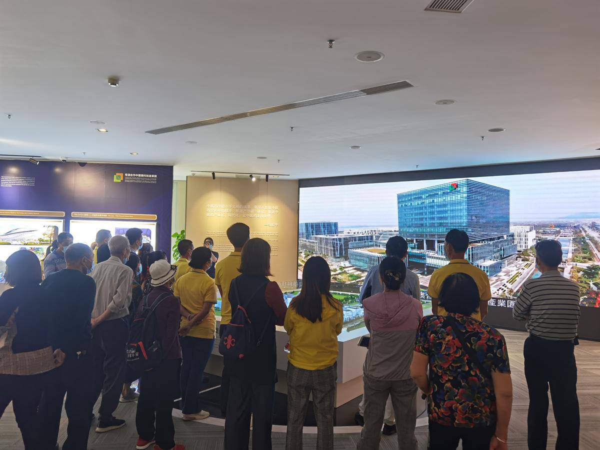 当天,一行81人先后前往粤澳合作中医药科技产业园、东西汇文艺会客厅展示中心参观。在粤澳合作中医药科技产业园,展厅蓝色墙面上的时间轴向大家展示了近年来琴澳共建和发展的过程。澳门居民刘姐表示,她来到横琴已经20多年了,那时候的横琴交通不便,人烟稀少,虽与澳门一水之隔,但是当时一面繁华,一面荒凉的景象,才更能看出现在横琴的发展迅速。跟随着解说员的步伐,大家还参观了高新技术产业区,它是产业园首个正式落地的建设项目,也是珠澳共同开发横琴的启动项目。党员张叔感慨,中医药是中华民族历经了几千年的传统医学,后辈要谨记“传承精华、守正创新”的重要性!