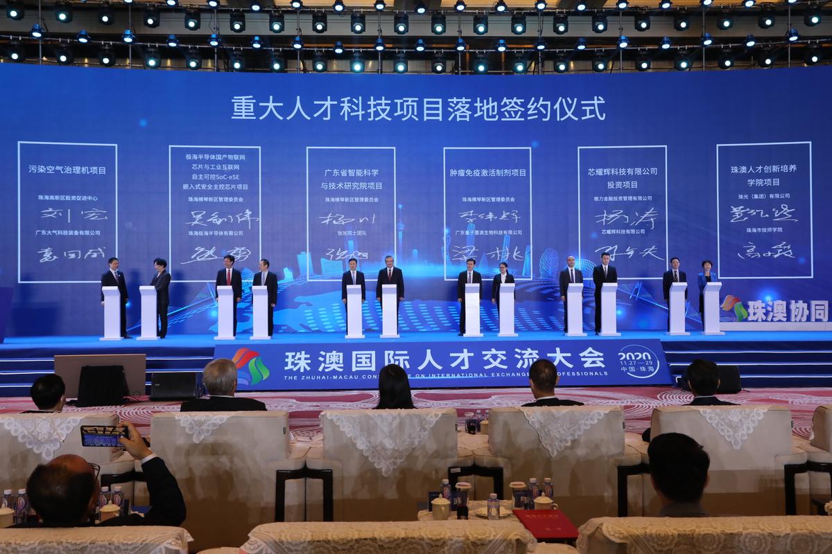 在大会开幕式上,珠澳两地签署《关于推进澳珠人才协同发展的合作协议》,推动两地人才深度融合发展;六个重大人才科技项目现场签约落地,总额超过43亿元;珠海从全市各领域遴选优秀人才代表并首次推选“十大英才”,珠海市委书记郭永航现场为人才代表颁发证书,旨在以榜样作用激励广大英才为珠海经济社会发展作出更大智力贡献。