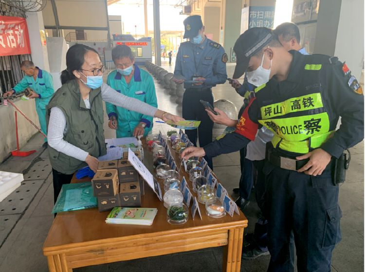 11月27日下午,坪山区委政法委联合坪山禁毒社工在坪山高铁站开展主题为“不让毒品进我家”禁毒宣传活动,进一步加强了周边禁毒宣传影响力,让过往旅客充分了解毒品、拒绝毒品。