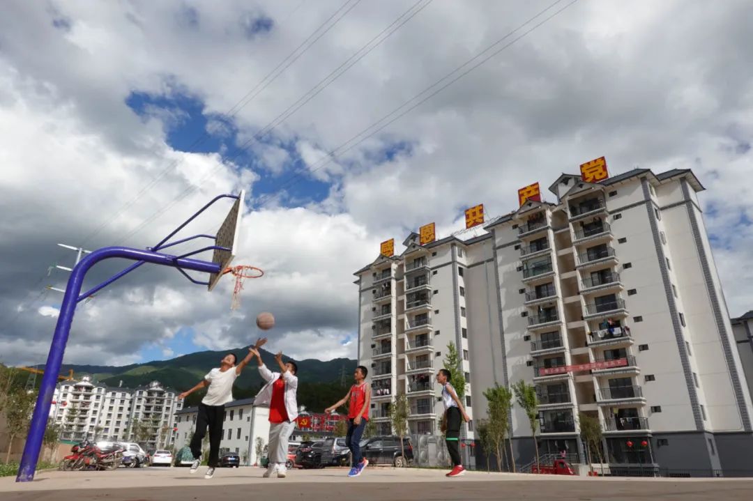 现在,沿着怒江岸边美丽的公路北上,可以看到一个个黄墙蓝顶、楼房林立的易地搬迁扶贫新村寨。夜幕降临,华灯初上,在泸水市大兴地镇维拉坝珠海社区易地扶贫搬迁点,傈僳族、白族等搬迁群众正在纵情欢歌。