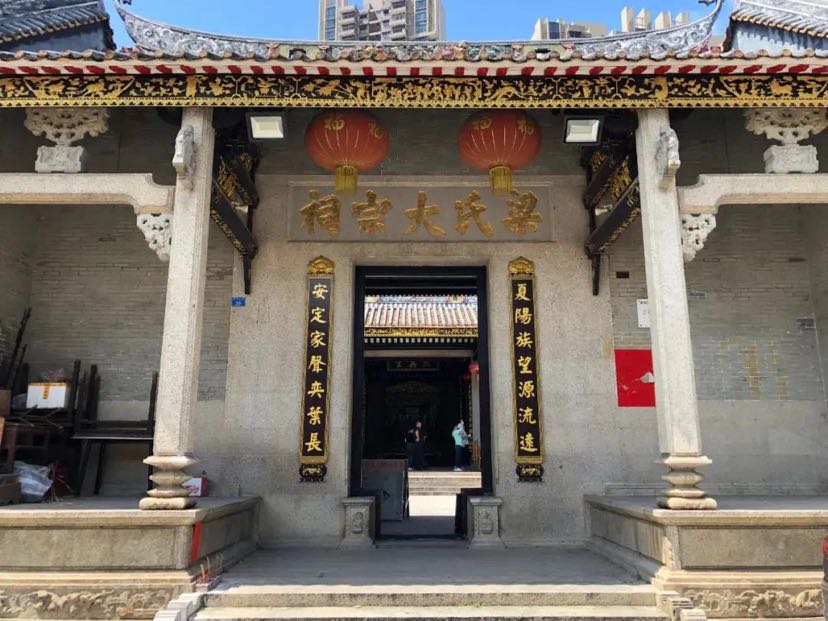 其中,梁氏大宗祠位于汀根村青云大街35号,清同治十年(1871)曾重修,最近一次重修为2016年。祠堂内有清代岭南著名壁画家杨瑞石所画的四相图和三多图,保存完好。