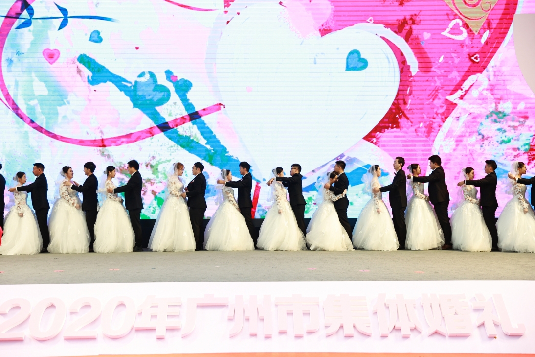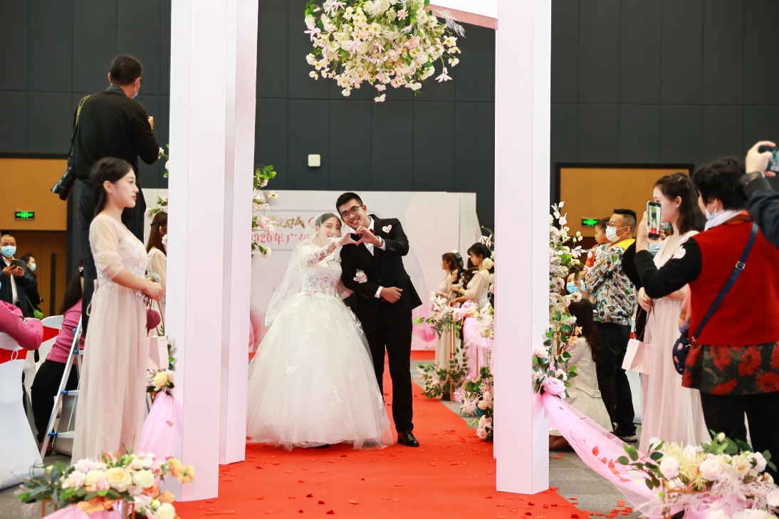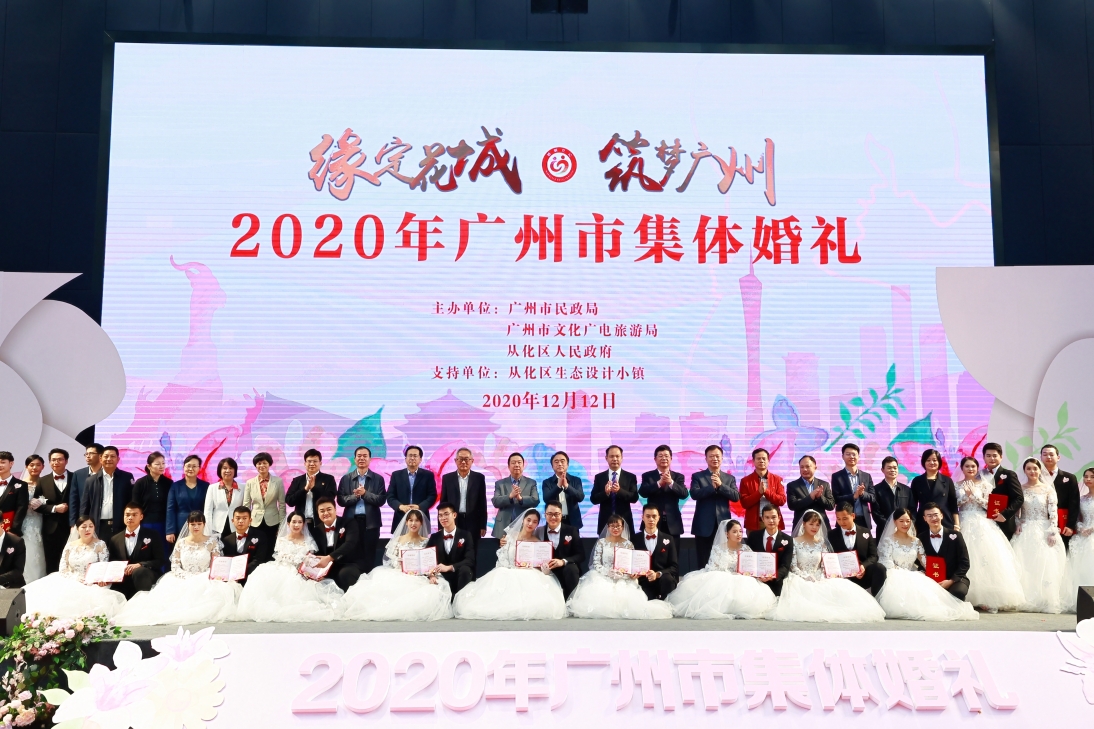 从研究生合唱团相识到走出社会,三年恋爱后,在这个“双12”,齐埼和赵宁穿上礼服和婚纱,走进集体婚礼的现场;因为抗疫期间要坚守岗位,戴康活和杜明月这对消防员+护士的组合推迟了婚期,终于在这一天举办了婚礼……12月12日,全国首个婚姻服务创新综合平台在广州从化揭牌落地,30对新人在祝福中完成了浪漫的集体婚礼。据悉,这是广州(中国)婚姻服务创新综合平台建设2020年系列活动中的一部分,另有发布婚姻旅游线路、“缘定花城 筑梦广州”集体婚礼、婚庆产业展览和发展交流活动等。此次活动由广州市民政局、广州市文化广电旅游局、从化区人民政府共同主办。