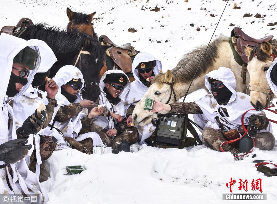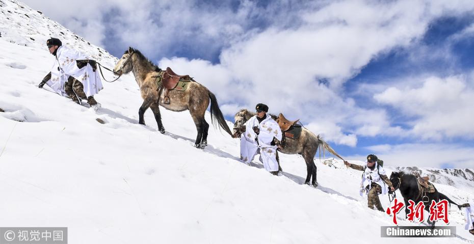 连日来,西藏阿里高原多地普降大雪,气温降至-20℃左右,部分地段积雪厚度达到1米左右。2月11日,驻守在海拔4600多米的陆军某边防团波林边防连加强边境管控力度,采取乘马与徒步相结合的方式对海拔5300多米的执勤点位实施边防巡逻,确保边境地区的安全稳定,迎接春节的到来。
