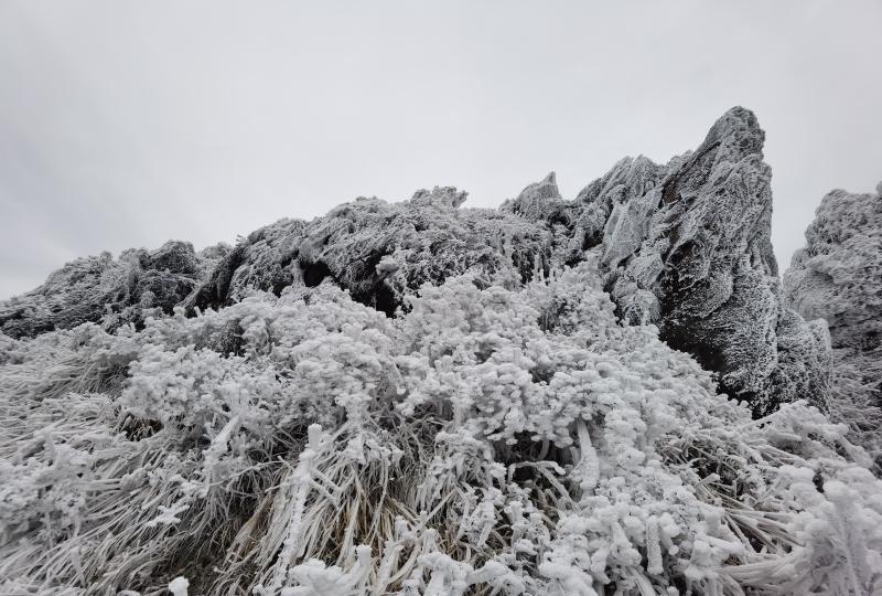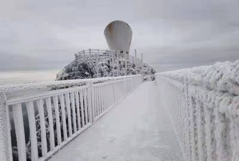 7日上午开始,位于清远连山的金子山迎来2021年第一场雪