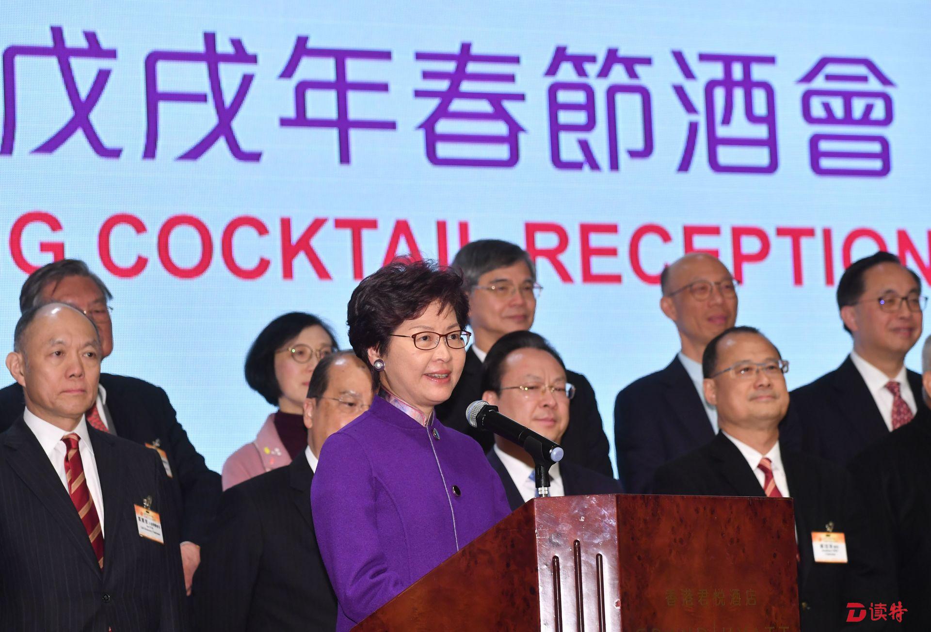 香港中华总商会22日举行春节酒会,全国政协副主席董建华、香港行政长官林郑月娥,香港中华总商会会长蔡冠深、外交部驻香港特别行政区特派员公署特派员谢锋、中央人民政府驻香港特别行政区联络办公室副主任谭铁牛、中国人民解放军驻香港部队副司令员郑国跃,香港财政司司长陈茂波、香港立法会主席梁君彦等嘉宾出席了酒会。