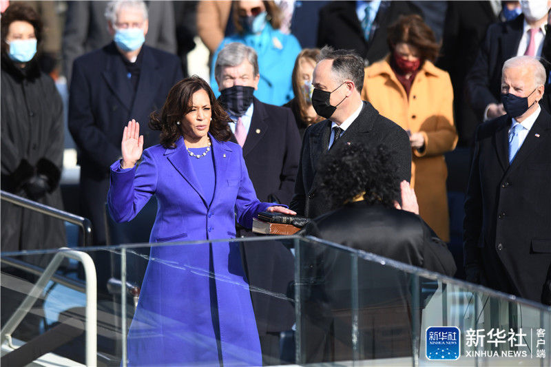 美国当选副总统哈里斯当天也宣誓就职,成为美国历史上首位女性副总统。