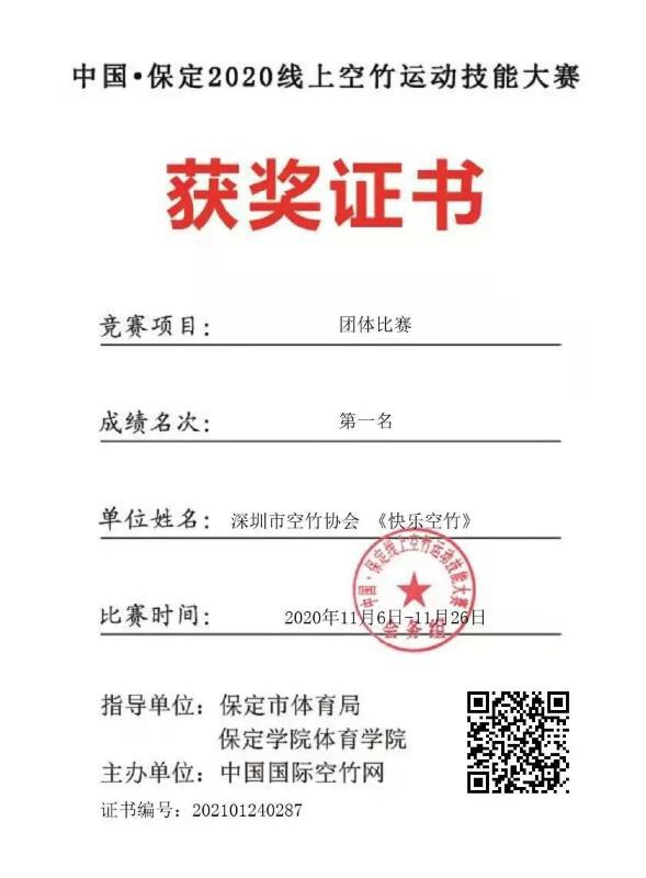 为检验教学成果,平湖街道长青老龄大学与深圳市空竹协会紧密合作,以平湖街道长青老龄大学空竹班学员为班底,编排了《快乐空竹》《爱我中华》两个节目,于去年11月代表深圳市空竹协会,参加了由中国国际空竹网主办的“中国•保定2020线上空竹运动技能大赛,经评定,结果于近日揭晓,《快乐空竹》《爱我中华》两个节目分别荣获第一名和第二名。