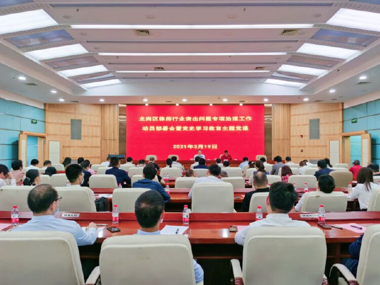 3月19日上午,龙岗区司法局召开律师行业突出问题专项治理工作动员部署会并开展党史学习教育主题党课活动。区司法局党组书记、局长黄汉平做动员讲话及讲授党史学习教育主题党课。区律师行业党委委员、区律工委负责人、各律所主任、党支部书记及律师代表共计120余人参会,局二级调研员巫新南主持活动。