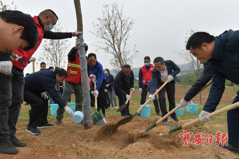 一年之计在于春,植树添绿正当时。3月23日,宝安区开展2021年植树节义务植树活动,宝安区委书记姚任,区委副书记、区长王立德,区人大常委会主任张志彪等区四套班子领导在石岩环湖碧道陌上花公园的土坡上新种下了一片黄花风铃木,为绿水青山增添新绿。