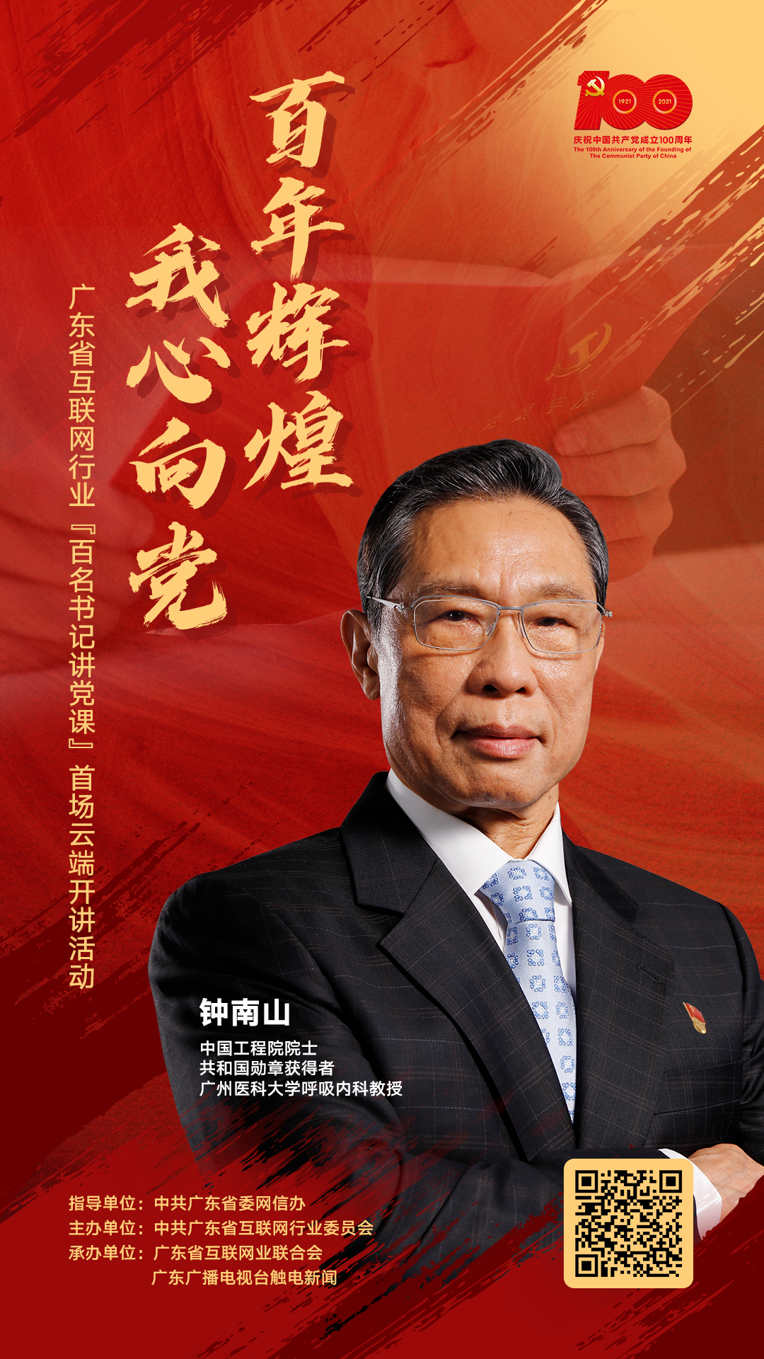 这里有中国工程院院士钟南山、省委网信办主任黄斌、省委党史研究室副主任易立,省市行业党委领导干部代表等10多位大咖和广东省60多个互联网企业,齐聚云端等你,快来一起充电啦!