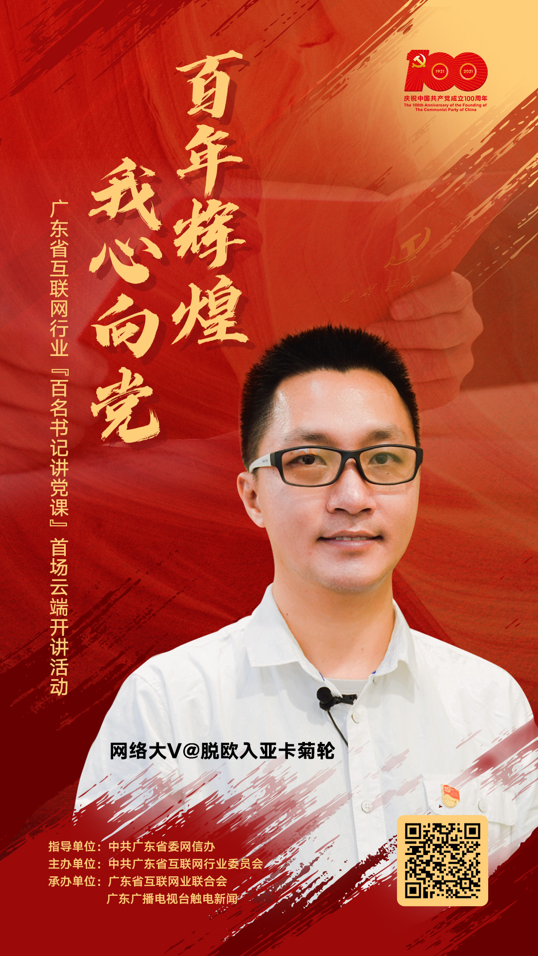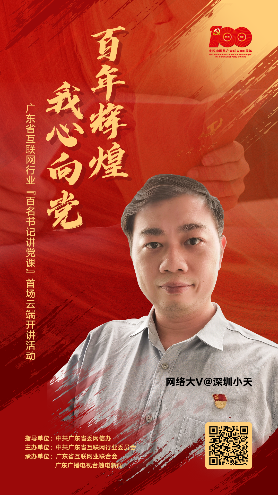 为隆重庆祝中国共产党成立100周年,在中共广东省委网信办的指导下,省互联网行业党委策划了“百年辉煌 我心向党”——广东省互联网行业 “百名书记讲党课”首场云端开讲活动,倾心书写百年大党的风华正茂,倾情展现广东互联网人的精神风貌,在网络空间凝聚起奋斗百年路、启航新征程的强大精神力量。