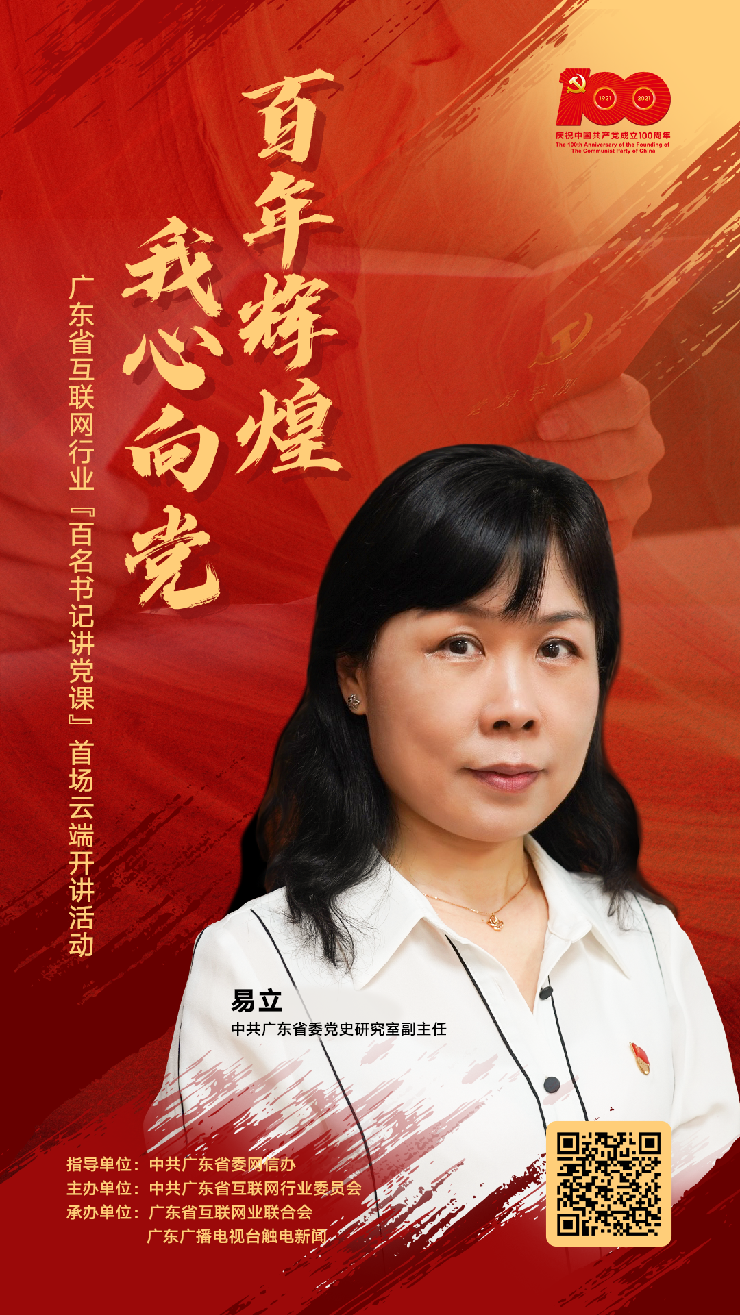 广东省互联网行业如何讲好“红色故事”,如何借助互联网让红色基因代代相传?如何将红色故事讲给年轻人听?如何给互联网党建插上信息化“翅膀”?……省委网信办主任黄斌将带我们从百年党史中学习宝贵经验,感悟互联网行业的初心使命。