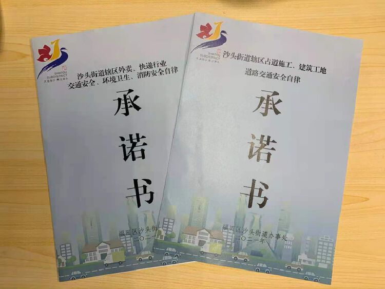 所有参会外卖、快递、施工企业在会场签订《沙头街道辖区外卖、快递行业交通安全、环境卫生、消防安全自律承诺书》《沙头街道辖区占道施工、建筑工地道路交通安全自律承诺书》。企业负责人在会议上郑重承诺严格遵守《承诺书》上各项条款规定,并将一式三份承诺书正式移交街道交安委办。街道交安委办、消安委办、综合行政执法办将在后续交通安全、消防安全、市容环境专项整治过程中严格按照《承诺书》中标准进行整治,对违反《承诺书》条款的将进行严厉处罚并教育。