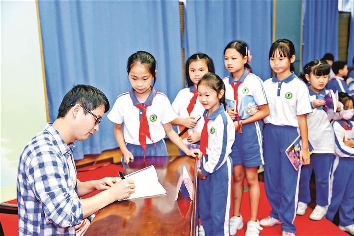 4月20日,“悦读经典·书香满园”——宝安区全民阅读名家校园行活动启动仪式暨首场名家领读活动在宝安小学报告厅举办。著名儿童文学作家陈诗哥作主题为“宇宙那么大,我带你去看看”的讲座,用充满童趣的故事、奇特的思维逻辑带领现场学生进入梦幻而富有哲理的童话世界。