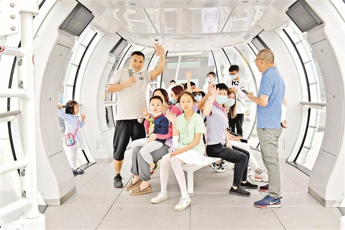 4月18日,宝安区联手华侨城集团经过三年匠心建设的“湾区之光”摩天轮正式向公众开放,开放首日接待游客破万。摩天轮总高128米,采用了世界首创的鱼鳍状异形大立架,共设有28个可容纳25人的椭球回转式太空舱,这也是国内最大的全天景回转式轿厢。乘坐摩天轮旋转一圈耗时30分钟左右,市民游客在轿厢内可俯瞰宝安中心区和前海,“湾区之声”演艺中心、宝安中心区中央绿轴、前海石公园、前海片区摩天大楼建筑群等组成的都市全景图以及美丽海湾等均尽收眼底。