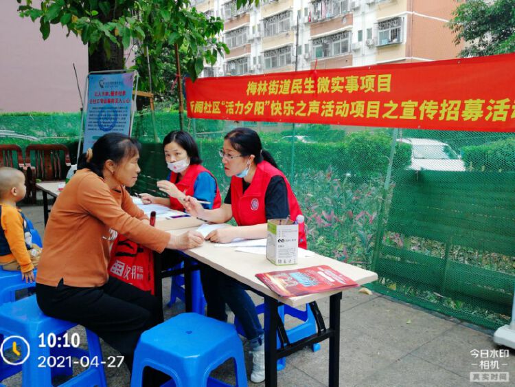 梅林街道新阁社区60岁以上老年人有近1000人,联社工在日常服务和沟通中发现社区老年人社会参与机会少,社交圈子小,平时主要生活以带孙子、打牌和做家务为主,容易产生失落情绪和社会无用感。为了丰富老年人的精神生活,在梅林街道办和社区党委的关心和指导下,新阁社区将开展“活力夕阳”快乐之声培训活动项目。