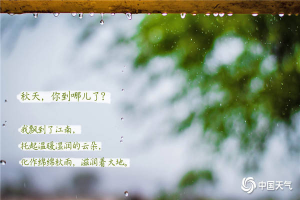 “秋天,你到哪里了?”“我飘到了江南,托起温暖湿润的云朵,化作绵绵秋雨,滋润着大地。