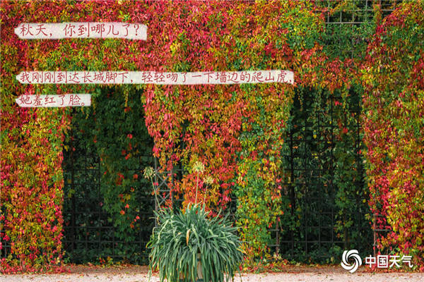 “秋天,你到哪里了?”“我刚刚到达长城脚下,轻轻吻了一下墙边的爬山虎,她羞红了脸。”
