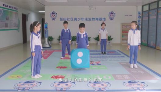 同时,福保街道还设计了“走进《民法典》时代地贴”张贴于基地内。地贴以知识点大闯关的方式,为青少年们精心挑选并设计了一系列题目,题目囊括了“小区物业打广告营收归属”、“高空抛物责任”、“离婚冷静期”、“无配偶者收养子女”、“遗嘱”等与市民群众生活息息相关的知识点,并将这些知识点融入游戏中,让孩子们更易接受的同时,也激发孩子们学法的热情。