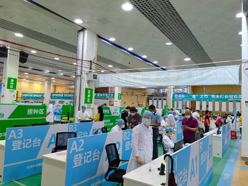 “今天打疫苗很顺利,昨晚通过网上预约,按照预约时段提前20分钟到现场,顺着工作人员指示的流程一路走过来,一环接一环,几乎不用排队,前后不到一个小时就打上了。”刚刚在松岗街道体育中心大型临时接种点接种完第一针新冠疫苗的孔女士高兴地说。该接种点28日起取消现场排队取号,全部实行网上预约分时段接种方案,现场秩序井然,没有出现拥挤和排队“长龙”现象。