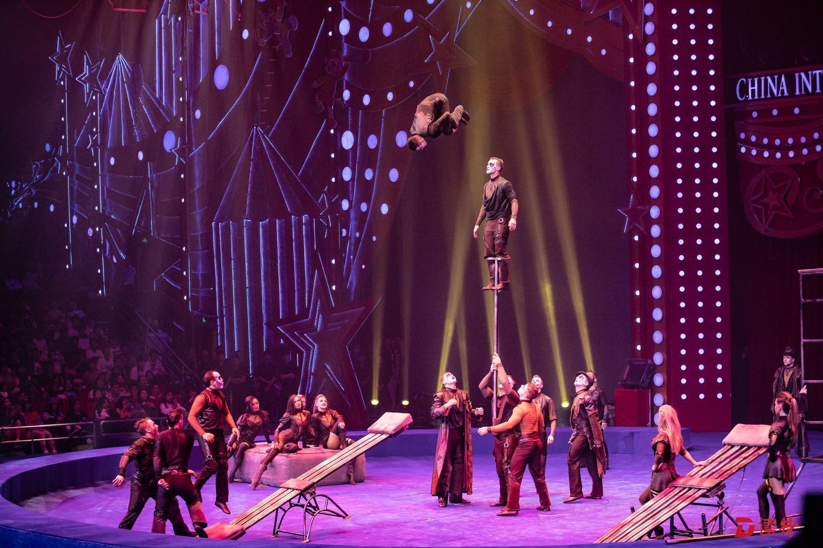 在珠海横琴长隆国际海洋度假区举行的本届马戏节舞台上,一群身着黑装,面涂白色油彩扮着各类小怪的男女,潇洒地在奔放的乐曲声中开始舞动。他们围着跳板变换着队形,一人站上跳板一端,另一端两侧男子原地起跳同时踏上跳板,将对面的演员高高弹起,要么1字型划过一道孤线,要么空翻一周、二周,后空翻一周、二周安全的落向地面。