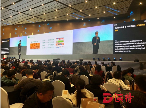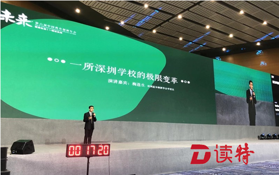 次日,深圳道尔顿新华公学校长梅连生以“一所深圳学校的极限变革”为题在大会主论坛发表演讲。