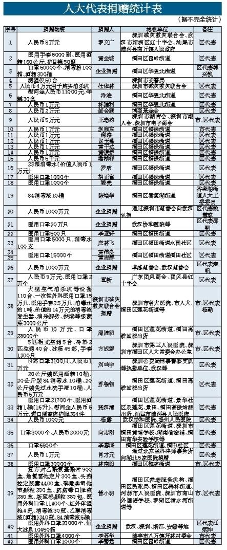 市、区人大代表杨勤率领深圳市减灾救灾联合会把社会各界爱心人士从境外筹集来的28000个口罩捐赠给了深圳北大医院等九家医院;